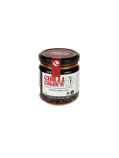 Napraforgóolajban lassú tűzön ropogósra sütött chilipelyhek és fokhagyma kombója, amit szecsuáni borssal és umamiban gazdag, gluténmentes szójaszósszal ízesítettek. Minden addiktív benne: a chili és a fokhagyma ropogóssága, a szójaszósz adta - ízfokozó - umami íze, a különleges csípőssége, amely éles, csípős, égető a chilitől, és zsibbasztó, bizsergő a szecsuáni borstól.