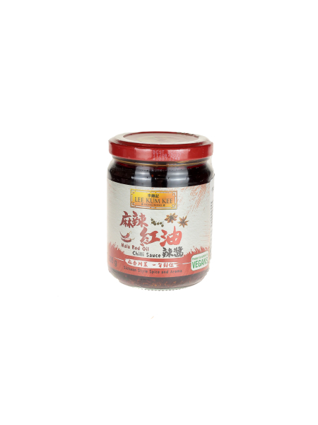szójaolaj 65%, cukor, sózott chili 5% (chili 8%, só), mogyoróhagyma, szecsuáni bors 5%, víz, fermentált fekete szójabab (fekete szójabab, só, víz), szójaszósz (víz, szójabab, só, búzaliszt), szárított chili 2%, szárított fokhagyma, fűszerek, élesztőkivonat, természetes szecsuáni bors aroma (szója), természetes chili aroma, színezék (paprikakivonat), só