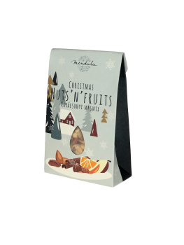 bio nádcukor, pörkölt pekándió 18%, pörkölt törökmogyoró 18%, pörkölt mandula 18%, bio kandírozott narancshéj (bio narancshéj, bio glükóz-fruktóz szirup (kukoricából), aszalt alma, fahéj <0.1%, tengeri só