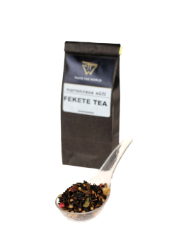 fekete tea 47%, almadarabok, fahéjdarabok, koriander, ízesítő, egész zöld kardamom, narancsszeletek, rózsabors, szegfűszeg