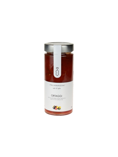 Olasz, kézműves konyhakész paradicsomszósz friss zöldségekkel.