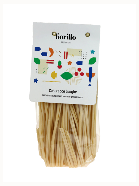 Olasz, bronzon húzott durumbúza casarecce lunghe. Átmérő: 9 mm; hosszúság: 220 mm; vastagság: 1.6 mm.