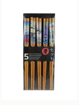 Arany motívumos festett fekete bambusz evőpálca szett 22.5 cm 5 pár