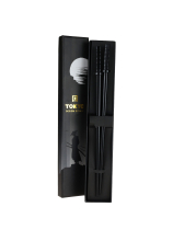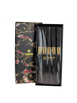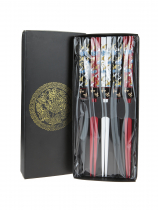 Virágos végű fekete fa evőpálca szett 5 pár dobozban