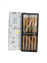 Tensoge alakú állatmintás fa evőpálca szett 22.5 cm 5 pár dobozban