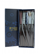 Vegyes mintás sötétbarna bambusz evőpálca szett 22,5 cm 5 pár dobozban