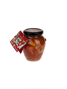 Tradicionális recept alapján, rizspasztával készült koreai savanyúság, többnyire magyar, helyben termett, szezonális alapanyagokból. Hogy ez a termék is teljes értékű lehessen, elkészítéséhez a cukrot datolyára, a fehér rizslisztet barna rizslisztre cseréltük.