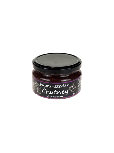 Hőkezeléssel tartósított, kézműves fügés szeder chutney: fűszeres, pikáns gyümölcsös szósz, mézzel édesítve.