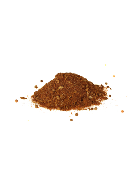 só, hagyma, koriander, római kömény, paprika, paradicsom, csillagánizs, cukor, chili, fokhagyma, kurkuma, szegfűszeg, fahéj, fekete bors, gyömbér, édeskömény, kukoricaliszt, nátrium-glutamát, fehér bors, oregánó, mangó, mustármag, lepkeszegmag, napraforgóolaj, zellermag, kaliforniai paprika, savanyúságot szabályozó anyag: citromsav; babérlevél, piros kaliforniai paprika, kardamom, szerecsendió