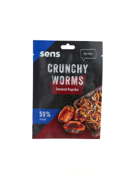 Füstölt paprikás ropogós lisztkukac snack. Magas rosttartalmú, 50% fehérjét tartalmazó ropogtatnivaló.
