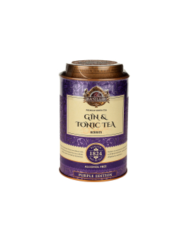 Szálas, gin tonic ízesítésű, bogyós gyümölcsös zöld tea, fém díszdobozban.